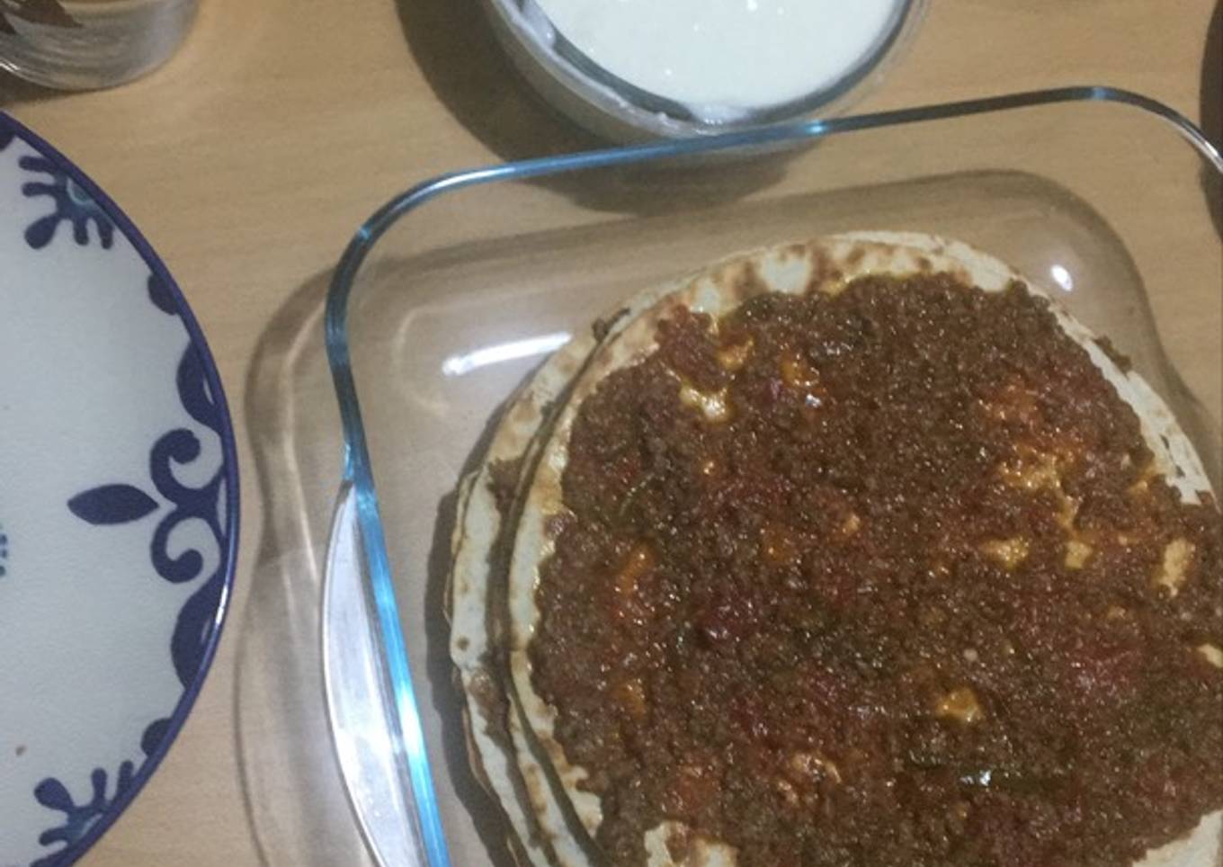 - Put a layer heated torilla and cover with your cook add 5 layers in a row and cooked meat