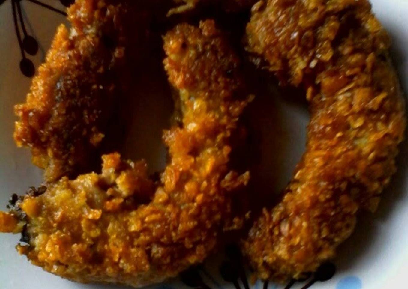 - Take 3 bowls one with the eggs, one for crushed cornflakes and one for flour